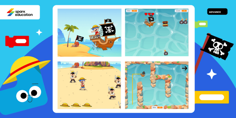 คอร์สสร้างเกม Pirate King บนโปรแกรม Scratch เรียนรู้ และฝึกฝนการเขียนโปรแกรม ผ่านกระบวนการสร้างเกมเต็มรูปแบบ สร้างสรรค์ และส่งมอบความสนุกได้ด้วยตัวเอง